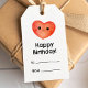 Happy birthday gift tag with cute smiling heart