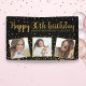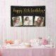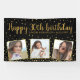 Celebrate a big birthday with this banner featuring 3 photos of the birthday girl/boy, 2 custom text headlines, all set against a black background accented with faux gold glitter confetti sparkles. Fun and festive perfect for any birthday celebration.
