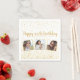 Celebrate a big birthday with these fun paper napkins featuring 3 photos of the birthday girl/boy, 2 custom text headlines, all set against a white background accented with faux gold glitter confetti sparkles. Fun and festive perfect for any birthday celebration.