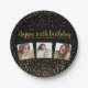 Celebrate a big birthday with these fun paper plates featuring 3 photos of the birthday girl/boy, 2 custom text headlines, all set against a black background accented with faux gold glitter confetti sparkles. Fun and festive - perfect for any birthday celebration.