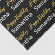 This black paper has faux (not foil) gold script that says Happy Birthday. It also has white text for the recipient's name. (Shown: Samantha) The text is in a pattern.