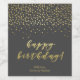 NewParkLane - Glamourous Birthday Wine Bottle Label, with 'Happy Birthday' in elegant brush/ script typography in faux gold, with gold confetti against a dark grey background.