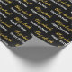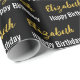 The wrapping paper is black. It has a text pattern for the recipient's name in a faux gold script and the phrase Happy Birthday. The name (Shown: Elizabeth) appears in an elegant faux (not foil) gold script. The other text is white. All of the text can be edited.
