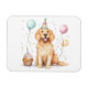 Cute cartoon illustration of Golden Retriever dog wearing a birthday hat. Perfect for pet lovers or dog parents.