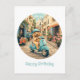 Happy Birthday Goldendoodle Dog Riding Scooter Postcard