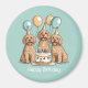 Cute cartoon illustration of Goldendoodle dogs wearing a birthday hat surrounding a birthday cake and balloons. Perfect for pet lovers or dog parents.