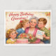 Funny vintage postcard. Grandchildren congratulate their grandmother on her birthday.
