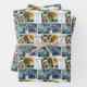 This cute, custom grandkids photo wrapping paper sheets for a grandfather features a modern layout of 4 grandchildren photos on a white background with blue typography reading We Love You Grandpa. This beautiful grandchildren gift wrap features your own photograph collage surrounding your personalised message and names.