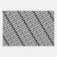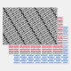 This wrapping has three different patterns but the message is the same, Happy Birthday. The first sheet is black and white. The second design is a red and black mirror image and the third design is blue text on a white background.