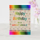 HAPPY BIRTHDAY Great Uncle Card. A very colorful rainbow card with a fawn background. Inside the card says HAVE AN AWESOME DAY.
