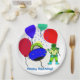 Cute space theme with alien robot boy Captain Zacky and Zippie Spaceship cartoon characters, with colourful red, blue, green, yellow flying balloons. Captain Zacky is a happy, green robot boy smiling and waving his hand hello, with a yellow green light blue spacesuit and space boots with the look of 3D light up buttons, with his friend Zippie the Spaceship a blue green spaceship with the look of 3D lights, blue eyes, happy smile, yellow light beams soaring into the galaxy. Fun birthday party plates for any child who loves robots, spaceships, aliens and exploring the galaxy. Original Graphic Art cartoon characters © 2014 TamiraZDesigns.