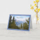 Beautiful tree and mountain scene on birthday greeting card.