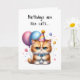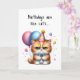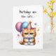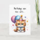 Add a little humour for someone special with this cute kitten holding balloons, wearing a blue bow tie and party hat on this birthday card. Birthdays are like cats… they sneak up on you! Even the GRUMPY ones!