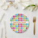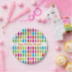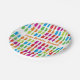 Paper plate with a happy birthday message and colourful and bright pattern of gummy bears. The gummy bears face sideways or forward. This is a colourful, fun, candy design with customisable words.