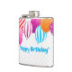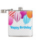 The flask itself is fine. It’s a cheap flask, obviously bought in bulk, however am prepared to overlook that. Given that it is a personalized item, I would have liked to have seen gift boxing instead of the generic packaging. Terrible printing, and/or quality. It’s a cheap, tacky vinyl. It is not cut straight and is also applied in a way that it is overhanging the bottom, causing the glue to catch on items and it will eventually roll and tear, damaging the wrap.