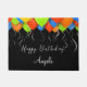 Happy birthday home welcome mats designed with colourful balloons a Happy Birthday graphic along with name drop you can personalise with the name of any birthday girl or boy, man or woman in a fun way to welcome guests to the party at your home or office.