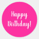 Happy Birthday Hot Pink White Typography Classic Round Sticker