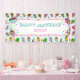 Cute ice cream themed banner for a girl's birthday party. Just add your daughter's name in the personalise area. Pink, purple, teal, red cherries and lots of fun whimsical hand drawn ice cream cartoon characters.