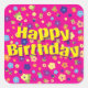 Square sticker to match our "Happy Birthday in Flowers" invitation with an image of “Happy Birthday” in big yellow letters on a background of whimsical flowers on pink. See matching custom-cut vinyl sticker, invitation, envelope, favour box, favour tag and label. See the entire Birthday Sticker collection in the INVITES | Stickers & Labels section.