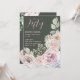 Customisable birthday invitation with Watercolor roses in pale pink and cream with a green background.