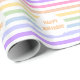 Happy Birthday in White Circle Rainbow Stripes Wrapping Paper