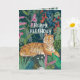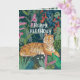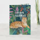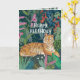 Celebrate a birthday with this vibrant jungle-inspired design featuring a majestic tiger resting among lush tropical leaves and colourful flowers. The rich botanical background and playful hand-drawn style create a lively and adventurous feel. With cheerful “Happy Birthday” lettering and detailed jungle plants, this design is perfect for animal lovers, nature enthusiasts, and anyone who enjoys bold tropical artwork. A fun and unique way to send birthday wishes with a touch of wild jungle charm. Original artwork by Caroline Bonne Müller