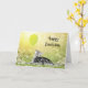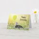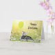 Silver tabby kitty cat in daisies with a birthday balloon it watches rising to heaven with all the birthday wishes cute cat lovers birthday, or any other celebratory occasion, custom greeting card. Text can be easily changed or removed.