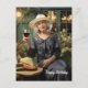 Happy Birthday Lady in garden with wine and cheese Postcard