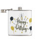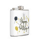 The flask itself is fine. It’s a cheap flask, obviously bought in bulk, however am prepared to overlook that. Given that it is a personalized item, I would have liked to have seen gift boxing instead of the generic packaging. Terrible printing, and/or quality. It’s a cheap, tacky vinyl. It is not cut straight and is also applied in a way that it is overhanging the bottom, causing the glue to catch on items and it will eventually roll and tear, damaging the wrap.