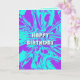 Happy Birthday Lilac Aqua Psychedelic Flower Card