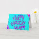 Greeting card graphic design artwork- Happy Birthday (Name) free style type and colors Greens, pinks, purple, white.