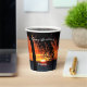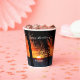 Happy Birthday Men Sunset Tropical Trees Paper Cups has a brilliant orange glow sunset on the serene ocean. Replace information with yours and give to that special person in your life. Photograph by Denise Bennerson, photographer