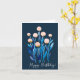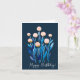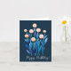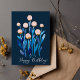 Happy Birthday minimal watercolor flowers Card on dark blue background. Simple round floral illustration birthday card.