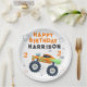 Happy Birthday Modern Monster Car Trucks Name Paper Plate