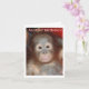 A cute birthday card for animal lovers. This design supports wildlife conservation The artist is a volunteer at the Orangutan Foundation Care Centre on the island of Borneo, an adoptive parent to numerous orphans, and she donates 100% of the profits from this image to the Care Centre. Orangutans are often referred to as monkeys, but they are actually great apes. Orangutans are gentle and intelligent creatures whose native habitat, the rainforest of Borneo and Sumatra, is rapidly disappearing.