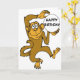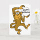 A sweet cartoon image of a monkey with round sign saying happy birthday in the hands.