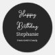 Happy Birthday Name Typography Modern Black White Classic Round Sticker