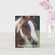 Happy Birthday card with a brown and white paint horse on the cover. Inside features a sepia picture of a horse in a field, and the customisable inscription "wishing you a day filled with all your favourite things" and "Have a Great Day!".