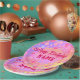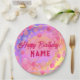 Pink birthday theme paper plates with the person's name and "Happy Birthday!" Design has a special colour effect with various orb dots adding depth, colour and richness to the context. A beautiful design that adds so much charm to your table! Matching accessories sold separately include paper cups and a paper plate with your personal photos. HAMbyWhiteGlove aka HAMbyWG.