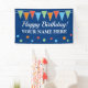 Custom Happy Birthday party banner with colourful bunting flags garland and confetti dots. Add your own name. Cheerful design with elegant typography template. Perfect for kids, friends, family, co worker, boss, husband, wife, dad, mum, teacher, colleague, nurse, employees, grandpa, grandma, children, business owner, etc. Personalised decorations for festive party. Also nice for anniversary, new year's even, corporate party, wedding or retirement celebration. Customisable colours.