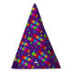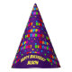 Perfect for any birthday party, this design features a background of multi coloured 'Happy Birthday' words and on the peak is a semi circle where you can add your own words or message and a name. The background colour of the hat and the semi circle can be changed to a colour of your choice.