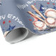 Happy Birthday Pattern Name Blue Red Bat Baseball Wrapping Paper