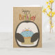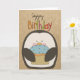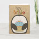 Happy Birthday Penguin holding Cupcake greeting card on craft paper. Cute and colourful. Perfect for anyone.