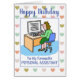 Woman working at a computer. Personal Assistant birthday card. Personalise with your own details and message