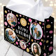 Make your gifts even more special with a custom photo gift bag. This stylish design features a simple pattern of circles and stars, with "Happy Birthday" in a trendy font. You can personalize the template with the recipient's name, age and five of your favorite photos of family, friends and pets! Perfect for milestone birthdays including 18th, 21st, 30th, 40th, 50th and 60th. This allover patterned gift bag comes with your choice of a matte or glossy finish. Printed colors: pink, gold, black and white, or customize the colors with the design tool.