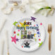 Bright and with colourful stars, Happy Birthday dinner plate, with the year of the birthday, the child's name, and his new age! Just having a look at this plate feels like a party! Background can be any colour (just personalise) designed by HAMbyWhiteGlove aka HAMbWG