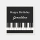 Stylish party paper napkins featuring a piano keyboard, and customisable wording for you to add a name or other text. Perfect party napkins for piano players.