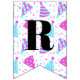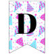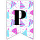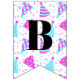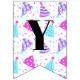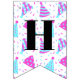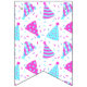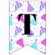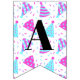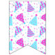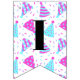 This bunting flag banner features the words "Happy Birthday" with a blue and pink party hat and confetti pattern design!