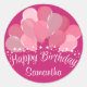 Happy Birthday Pink Balloons And White Stars Classic Round Sticker