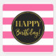 Happy Birthday Pink Black Gold White Stripes Square Sticker